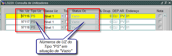 Para o endereço 01-33-1-01 não encontrei nada, pois estão realmente vazios e neste casso aciono a opção. Encontro à mesma situação no endereço 01-33-1-02 e realizo o mesmo processo de somente fechar o endereço.