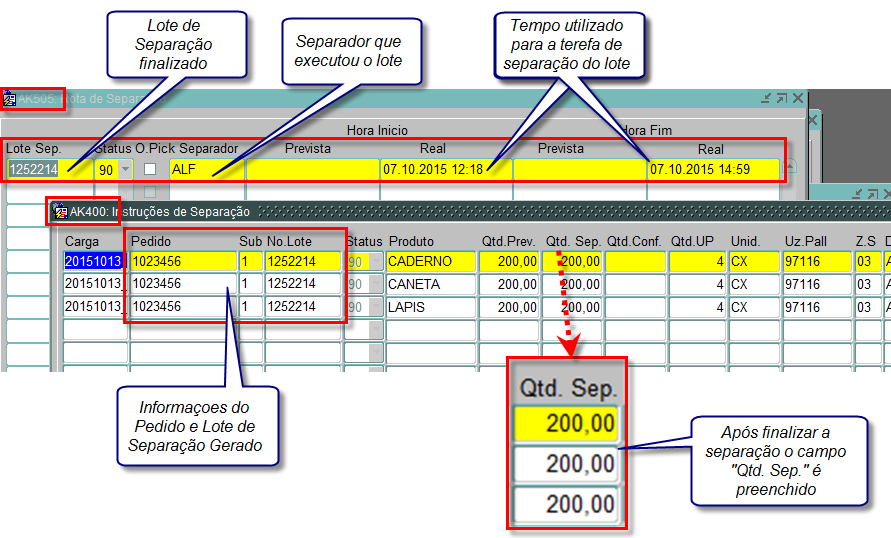 Após sua finalização, todos os pontos relacionados ao registro são atualizados e finalizados no WMS, ficando seu registro somente para histórico ou análise de performance operacional.
