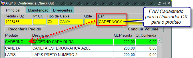 Após a finalização do endereço podemos observar na IN600 (atualizar a pesquisa) que foi encontrada um divergência entre o previsto pelo sistema e item contado pelo operador.