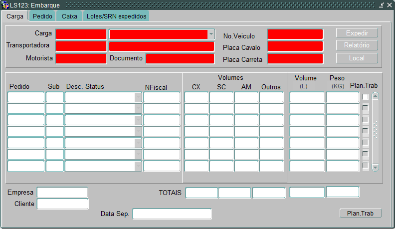 Iniciando o processo, devemos organizar todos os pedidos relacionados a carga, confirmar se todos estão prontos para o embarque (conferência finalizada), e informar os detalhes de transporte da carga na LS123.