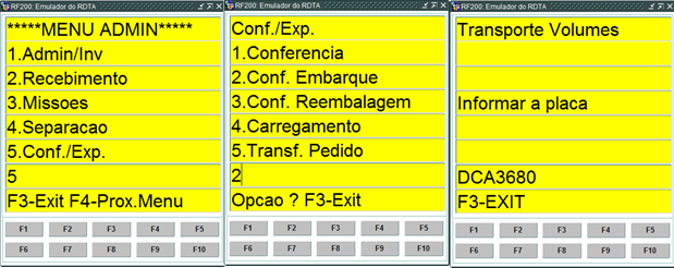 Como realizado nas etapas anteriores, executaremos o processo através do emulado de coletor (RF200) que temos no WMS Alcis.