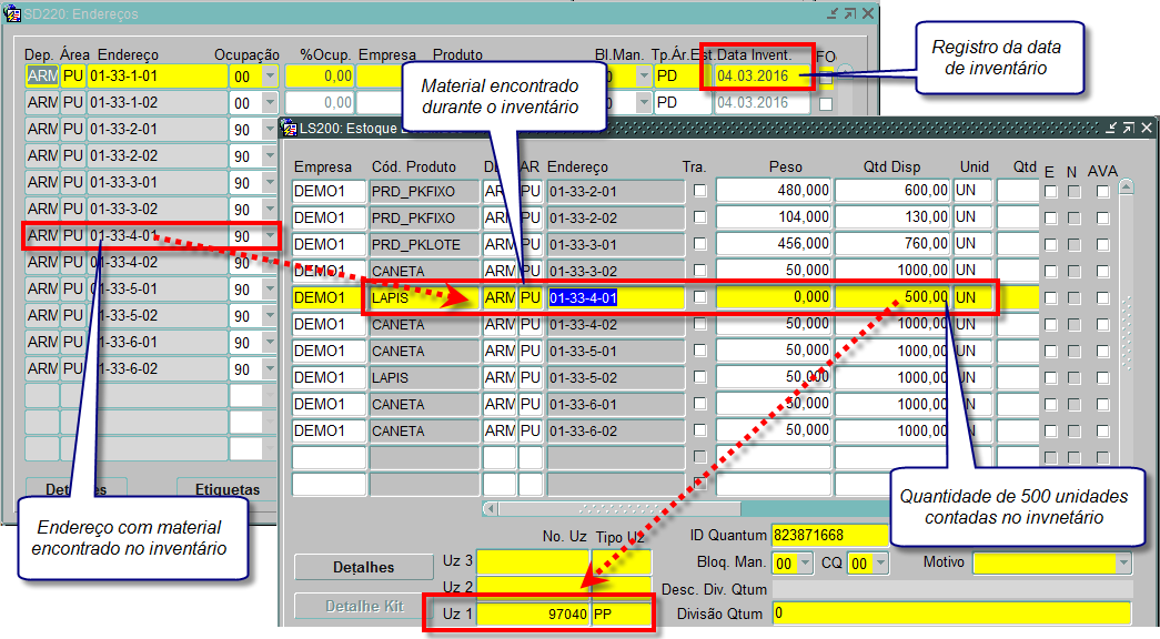 Se realizar nova pesquisa nas telas de endereço e estoque, veremos que os dados foram atualizados e estão disponíveis para uso da operação.