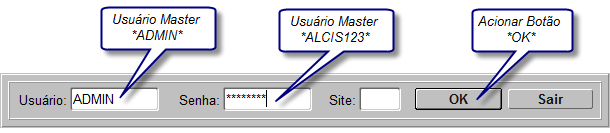 Neste momento, o usuário que estiver acessando o site deverá utilizar o usuário, senha (se necessário site) e acionar o botão “OK” para acesso ao sistema WMS.