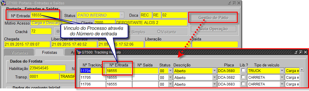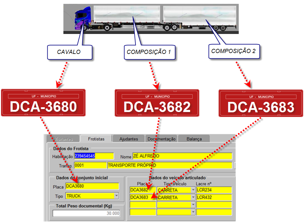 Utilizaremos o mesmo processo da etapa anterior “GT100”, onde foi dado entrada de um veículo articulado com duas composições, sendo cadastro de portaria: