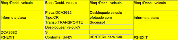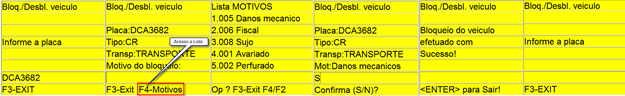 Acessando a Opção 5 → Opção 2 → Informar a placa (baseado na minuta de despacho) → acionar o enter