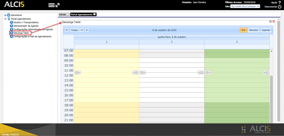 Após configurar e salvar a grade de agendamento é necessário ir até o Portal Web Alcis para efetuar o agendamento, escolhendo o tipo de agendamento no “Portal Agendamento” de acordo com o selecionado na tela GT410 do WMS.