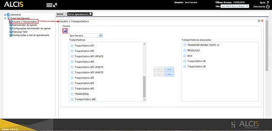 Neste menu realizamos a associação da transportadora para cada usuário do portal, permitindo um ambiente limpo e controlado. Após selecionar qual transportadora será exibida para cada usuário basta salvar o processo.