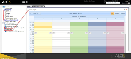 O Menu do Portal Agendamento pode ser configurado em “Administrar/Objeto ou Grupo X Objeto”, onde é possível parametrizar todos os tipos de classe de grade de agendamento a serem realizados, por exemplo: Embalados Carga ou Descarga, Granel Carga ou Descarga, Produto congelado e refrigerado Carga ou Descarga e Produto químico carga ou descarga. Tudo ajustável de acordo com a operação do cliente.
