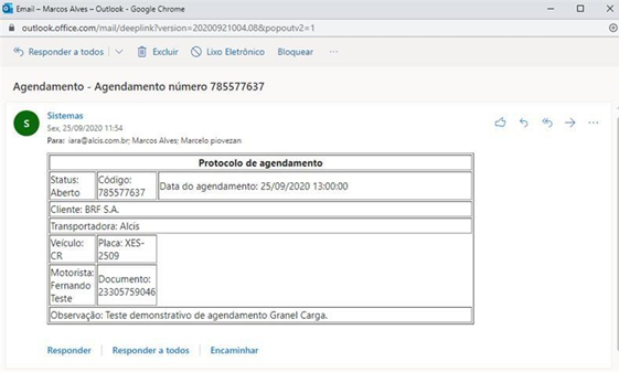 Automaticamente será enviado um e-mail para o administrador da agenda com os dados do agendamento efetuado.