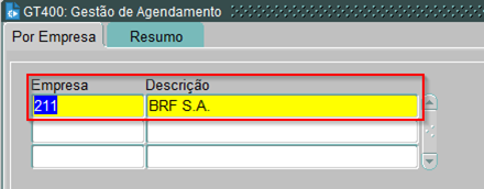 Na tela GT400 na aba “Por Empresa”, para realizar a consulta pelo proprietário de estoque devemos utilizar a tecla de atalho “CTRL + F11” do teclado, assim que a consulta for realizada serão exibidos todos os agendamentos relativos ao proprietário de estoque.
