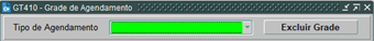 Para configurar a grade, devemos acessar a tela GT410 no WMS e inicialmente indicar qual o tipo de agendamento iremos configurar.