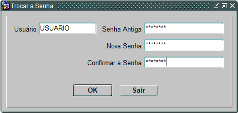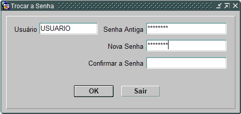 - Clique no botão "OK". Será aberta uma tela para "Troca de Senha".