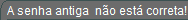 Caso o usuário insira informação errada no campo “Senha Antiga”, na validação o sistema apresentará no rodapé, ao lado esquerdo da tela, a mensagem indicativa do erro.