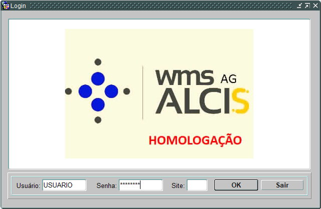 A inserção do “Site” não é obrigatória e, caso o usuário tenha acesso a mais de um site, caso o campo não seja preenchido, o WMS o direcionará ao site padrão. - Clicar no botão “OK”.