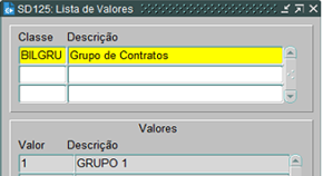 - Os grupos são cadastrados na tela SD125, classe “BILGRU”.