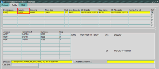 Após a exportação ser realizada, a OF não ficará mais disponível em tela.