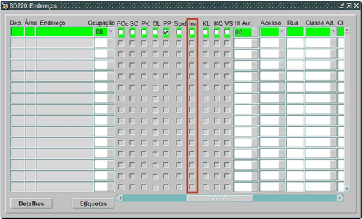 Quando o plano for gerado, é possível consultar na tela SD220 os endereços que estão em inventário.