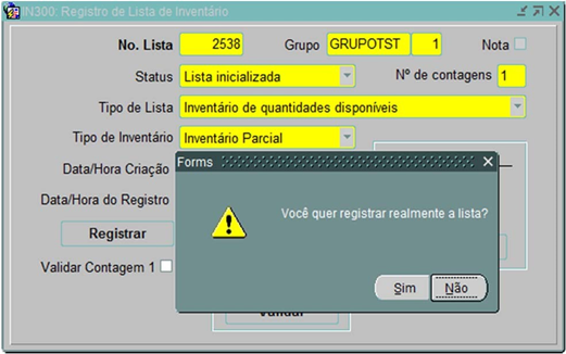 Executa a criação de uma lista de inventário, e cria o número da mesma no campo “Lista”. O plano criado por este botão é o plano válido;