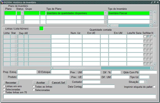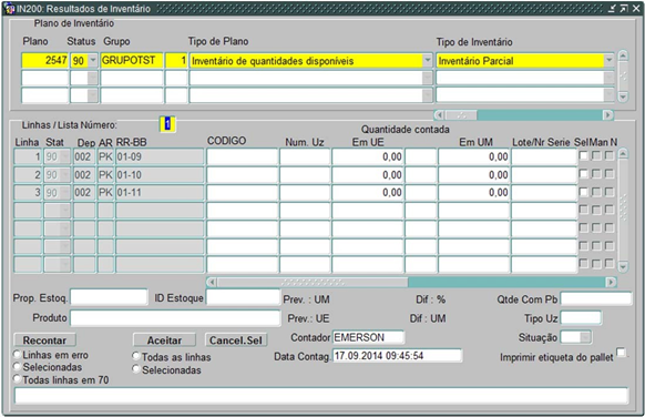 Também é possível consultar o plano de inventário com as linhas a serem inventariadas na tela IN200.