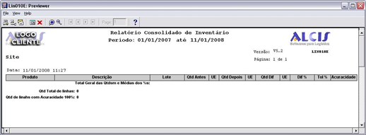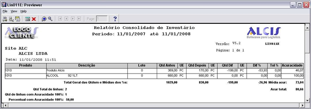 No WMS Alcis, é possível gerar relatórios com as diferenças encontradas no estoque durante o processo de inventário. A tela utilizada para esta função é a IN400.