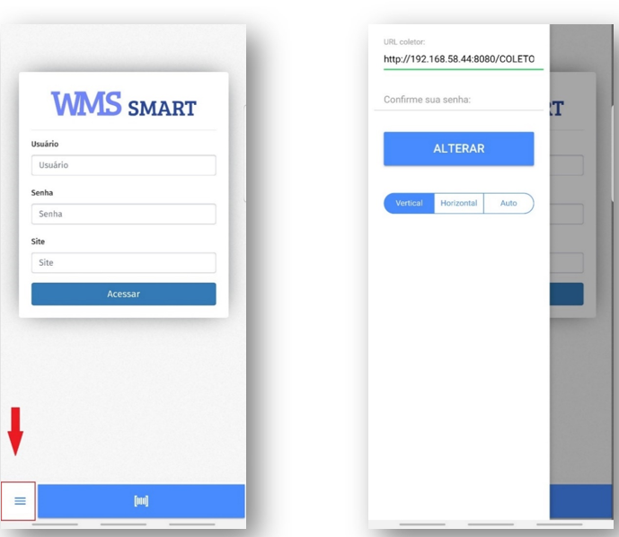 Após toda a configuração realizada basta preencher usuário e senha para realizar o acesso ao coletor web. Seja ele WMS Smart ou WMS Alcis.
