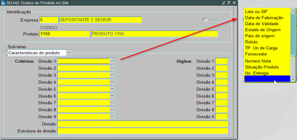 A tela Características do Produto permite ativar outros controles de gestão, caso necessário.