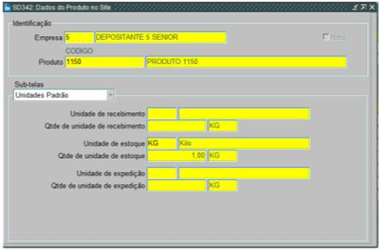 A tela Unidades Padrão é utilizada para informar as unidades de gestão do produto.