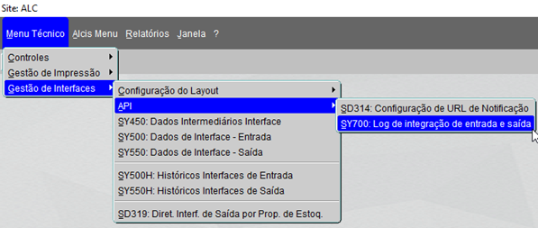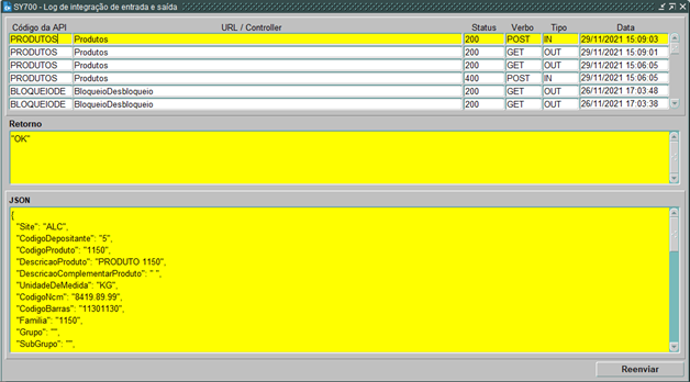 Para consultar se o produto foi corretamente integrado, pode-se acessar a tela de log de integração através do WMS Alcis (SY700) para consulta.