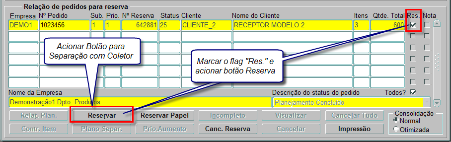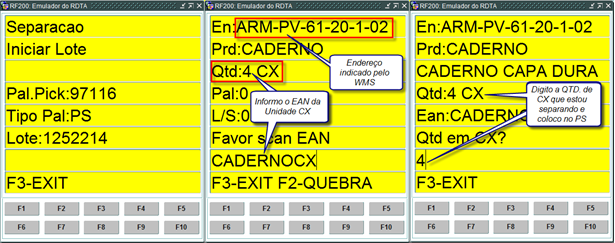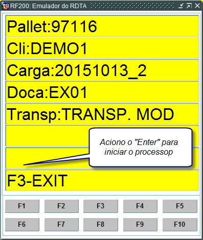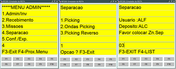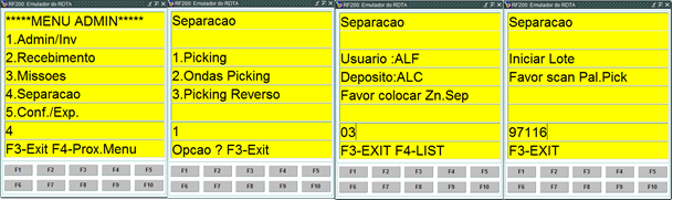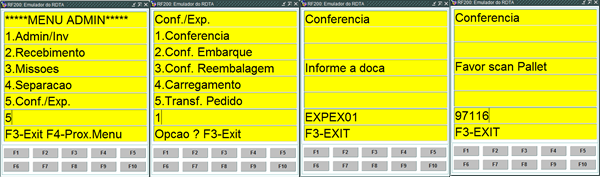 Como realizado nas etapas anteriores, executaremos o processo através do emulado de coletor (RF200) que temos no WMS Alcis.