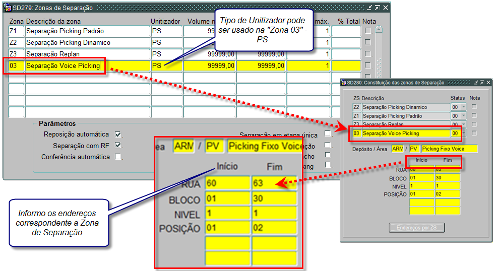 - Informo Início e Fim para Rua/Bloco/Nível/Posição