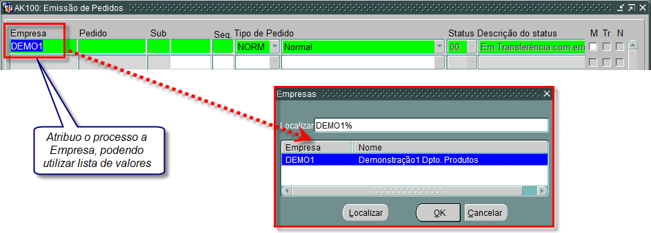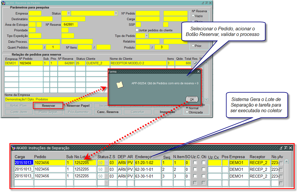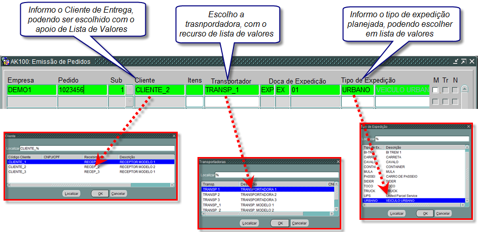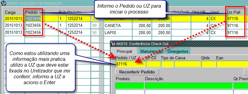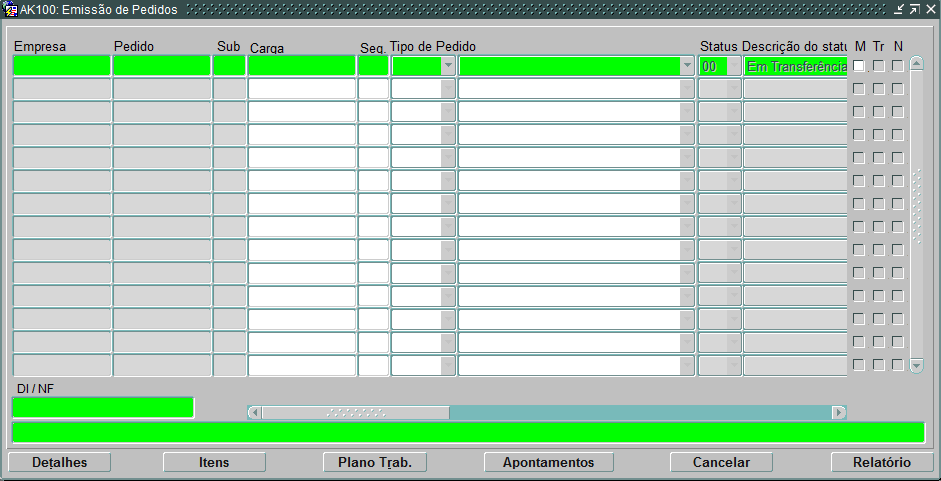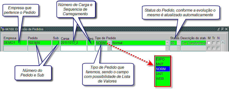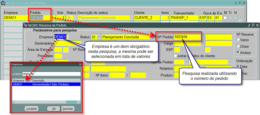 A primeira coisa a fazer é entender os vínculos dos processos. Se verificar a AK400, nas informações referentes ao pedido, temos o número da carga e este é a informação que utilizaremos para dar sequência ao processo.