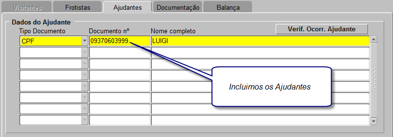 Se existirem ajudantes sob a responsabilidade da transportadora, os mesmos devem ser cadastrados na aba “Ajudantes”.