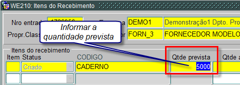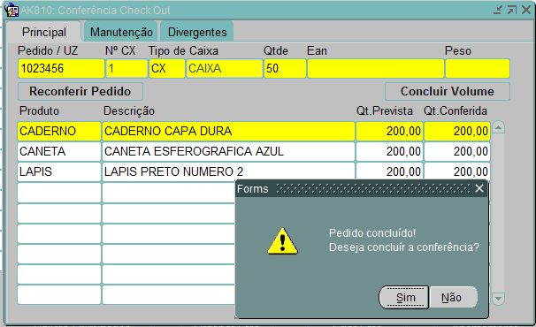 Seguimos as etapas de confirmação do processo onde são realizadas todas as validações sistêmicas. Teremos a informação de item não previsto (para a linha divergente) com a necessidade de validação.