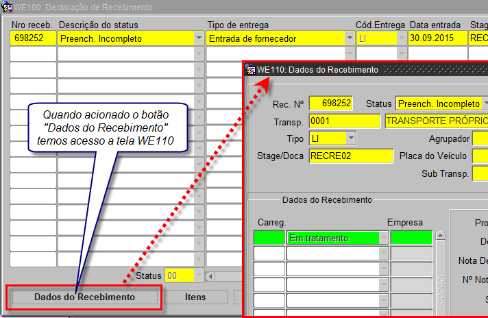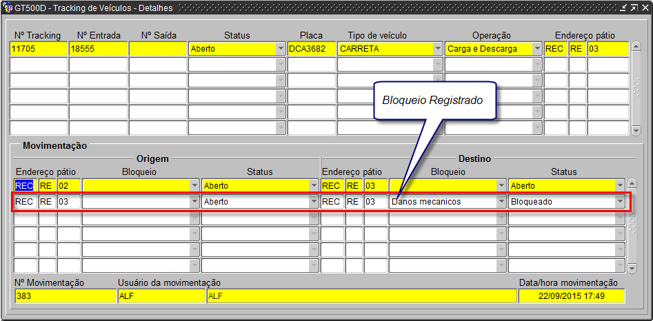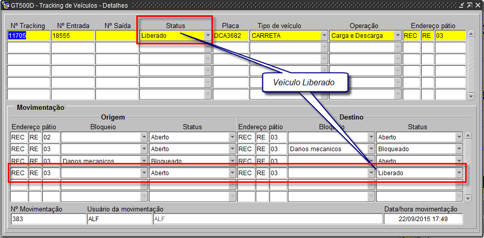 Se acionarmos a opção “GT500 – Botão DETALHES” terá acesso às informações detalhadas do processo de movimentação.
