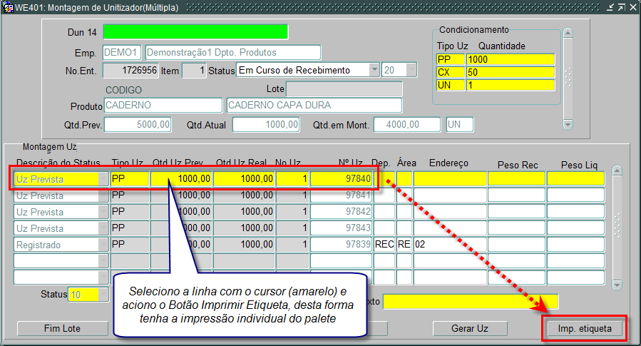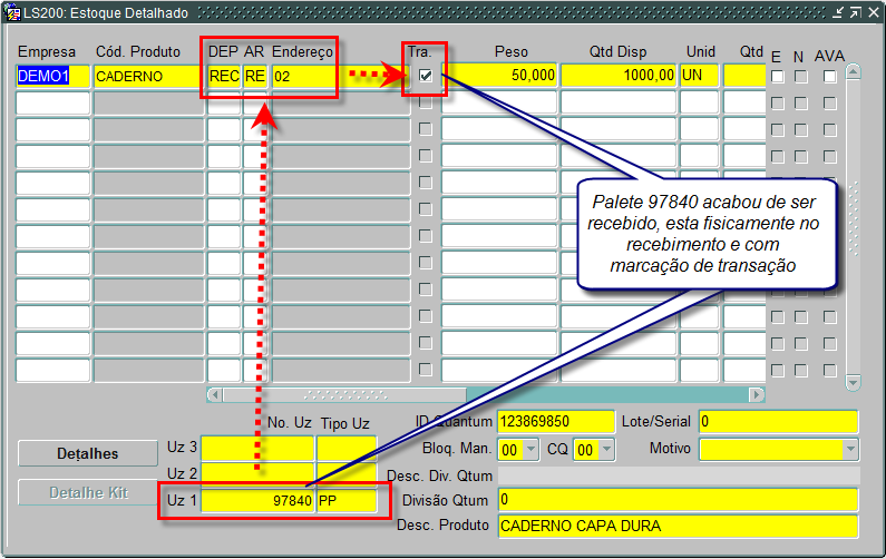 Se acompanharmos o plano na tela IN600 do WMS Alcis, veremos que realmente a previsão do endereço esta batendo com o físico: