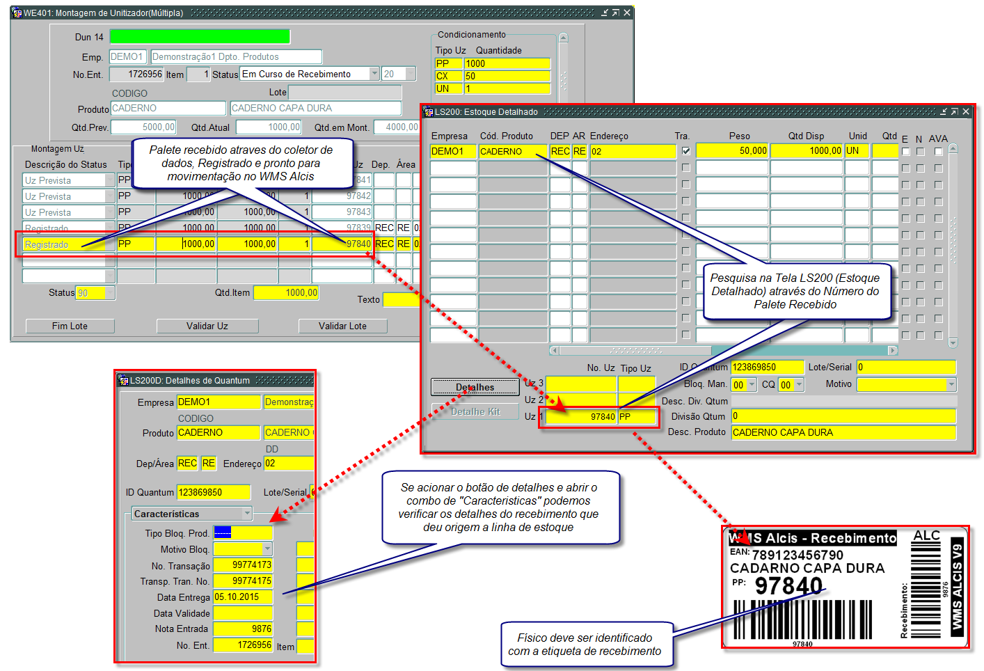 O WMS Alcis mantém em suas telas gráficas a utilização de processos direcionados por cores, baseados em regras simples que facilitam a utilização dos recursos do sistema.