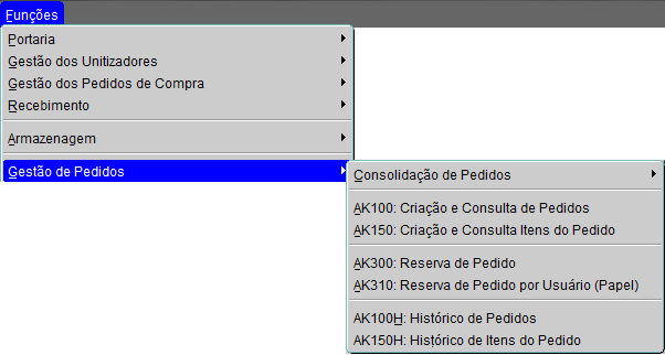 Utilize o menu geral como mecanismo de acesso à funcionalidade:
