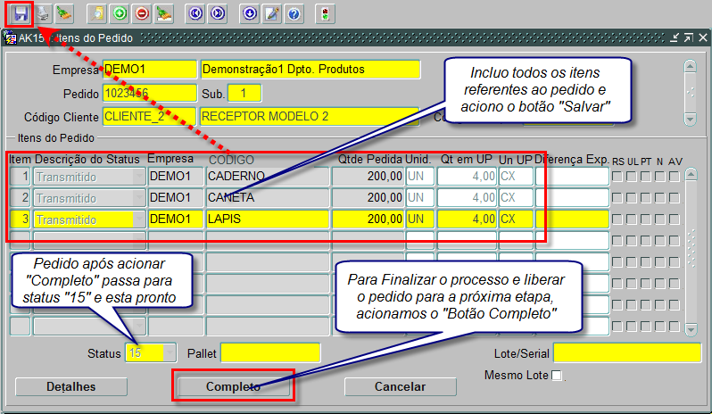 Em nosso modelo não estamos trabalhando com a expedição automática, sendo necessário o usuário com as devidas permissões executar o processo através da LS123, basta acionar o “Botão Expedir” para finalizar toda a operação.