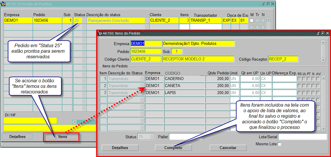 Para o embarque é necessária a conclusão de todas as etapas relacionadas até aqui no capítulo de atendimento de pedidos, ou seja, ele já foi criado, reservado, separado e conferido.