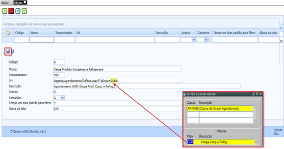 A URL tem referência na tela do WMS, SD125: Lista de Valores filtrada pela Classe “ARTAGE”, onde é possível parametrizar a classe de agendamento, adicionando ou excluindo as classes necessárias.