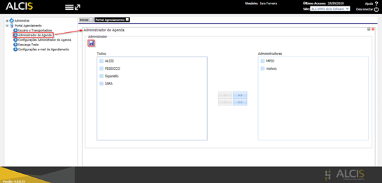 O Administrador da Agenda é o responsável por configurar, consultar ou excluir a agenda. Depois de associar os administradores à agenda é necessário clicar no botão “Salvar”.