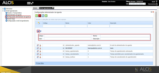A opção “Configurações Administrador da Agenda” é a parametrização inicial do processo de Agendamento Web. É obrigatório realizar o cadastro dos objetos: