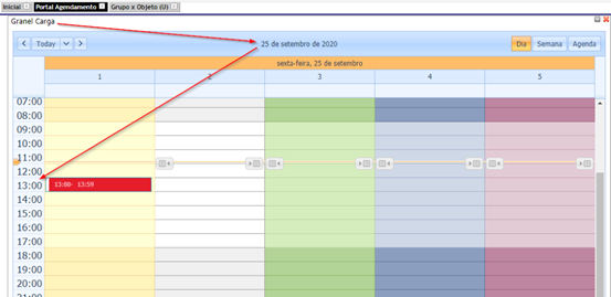 A tela de Grade de Agendamento será atualizada onde podemos verificar que está sendo exibido o agendamento efetuado com o horário inicial e final.
