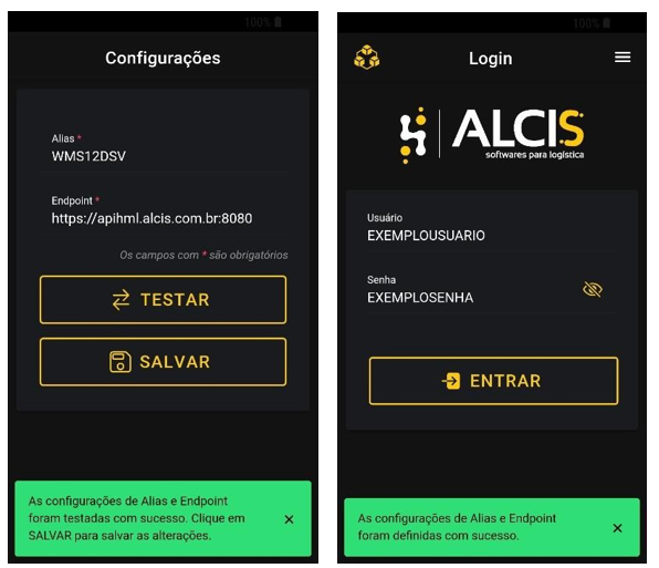 No primeiro acesso o sistema solicita o ALIAS e o endpoint que é cedido pela área técnica da Alcis.