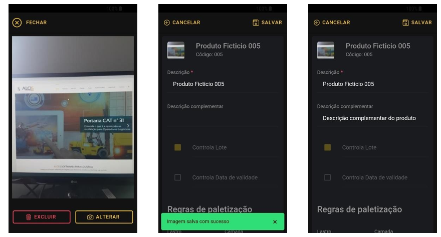 O Alcis Signum permitirá a manutenção e armazenamento de 1 foto por produto. Ao resgatar a foto e salvá-la o sistema criará automaticamente um “thumbnail” para apresentação de forma rápida no catálogo de produtos do App e outra em alta resolução. A foto poderá ser acessada tanto do catálogo de produtos quanto dentro da manutenção do produto.