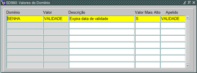A lista de valores foi criada na tela SD125 Lista de Valores e denominada EXPPWD: