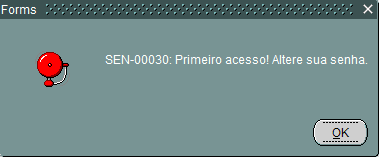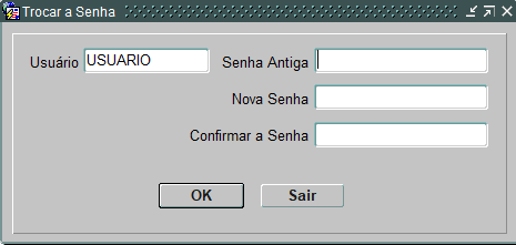 - Clique no botão "OK". Será aberta uma tela para "Troca de Senha".