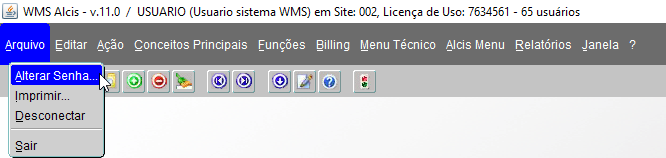 - No menu do WMS o usuário deverá clicar no menu “Arquivo”