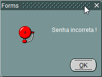 Quando o usuário faz uma tentativa, sem êxito, de acesso ao sistema, o mesmo apresenta mensagem indicativa de erro, informando o usuário de que a senha informada está incorreta.