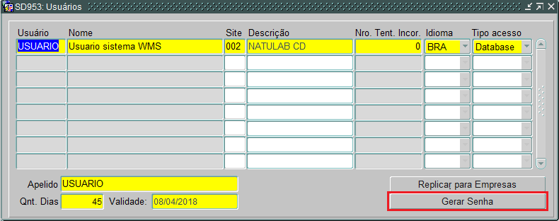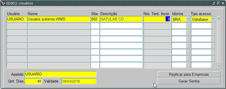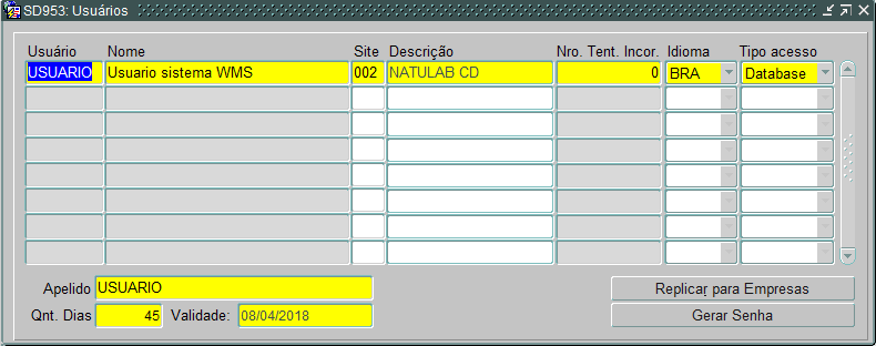 - Uma vez logado, deverá acessar a tela SD953: Usuários.